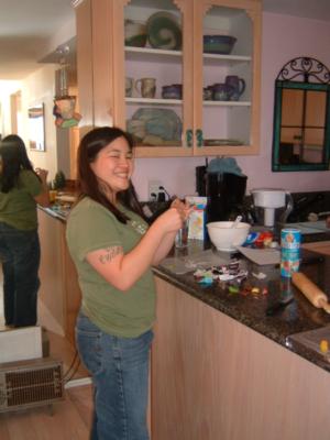Kaylee is mixing the “glue” which is made from lots of powdered sugar, egg whites and cream of tarter. It is very sticky and hardens very fast.