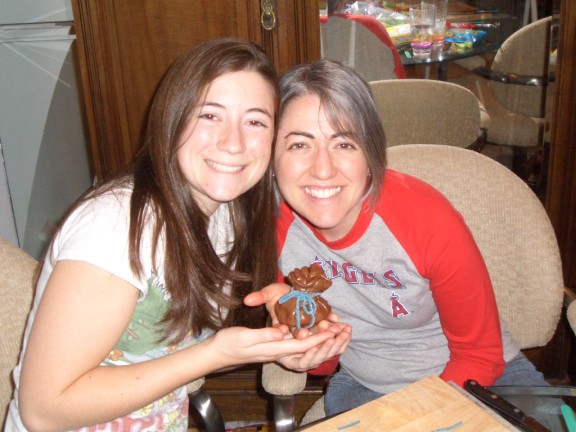 Here are Kaylee and Arie with Santa’s sack of toys. Inside are marshmellows, surrounded by a smooshed down mass of tootsie rolls and tied with a string made from a soft candy that has been rolled thin and meticulously tied in a bow. What attention to detail! What a crazy bunch!