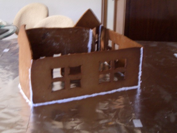 Putting the walls together is a four to five person process of gluing, holding and praying.