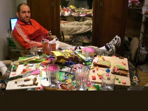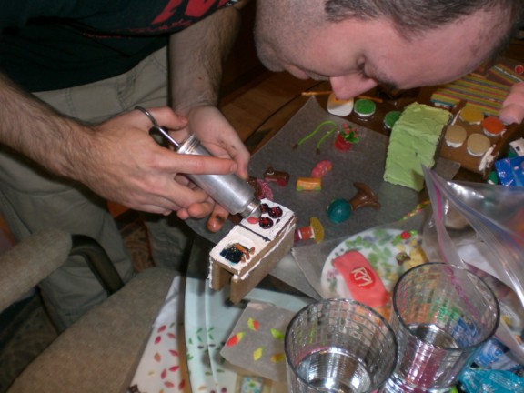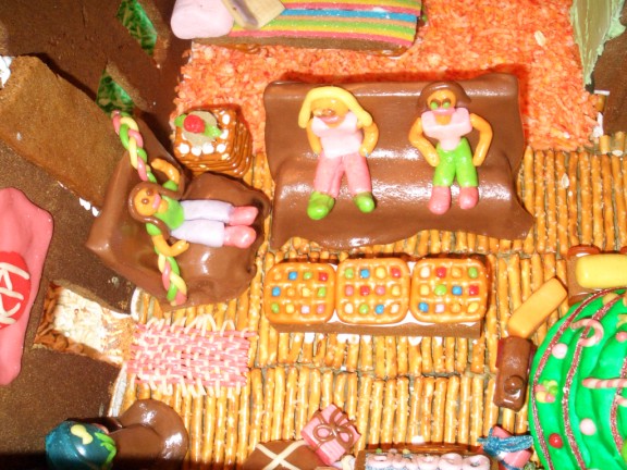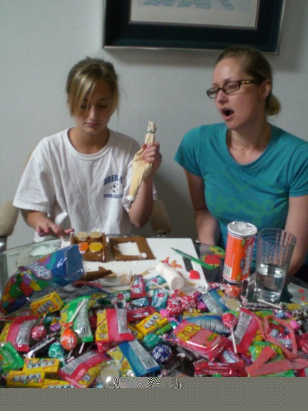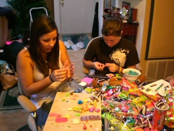 Kaylee and Blaire are molding wonderful things to go inside the house. Note the massive amount of candy available.