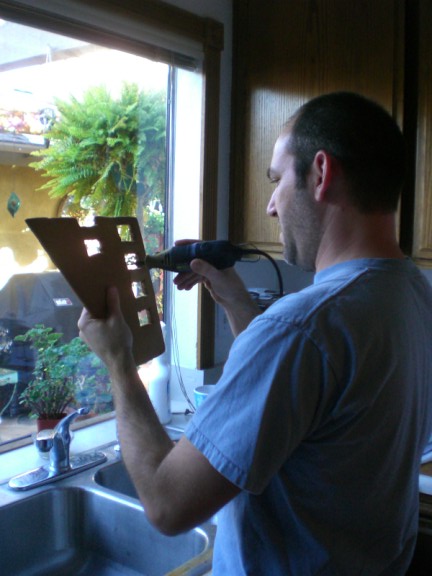 Adam just loves the dremel and this year I had all sorts of cool attachments that my friend Bob got me along with this new dremel. Here he is dremeling out the windows on the piece shown above in the oven.