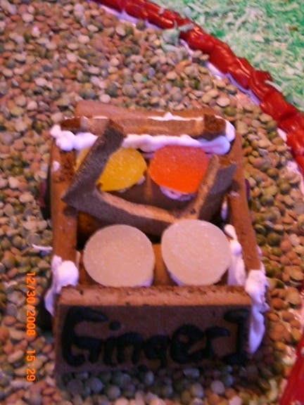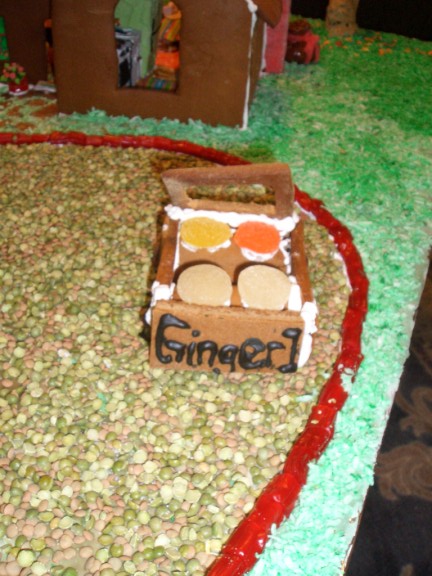 Jacqueline made this car, named Ginger 1, out of gingerbread and jelly candy.