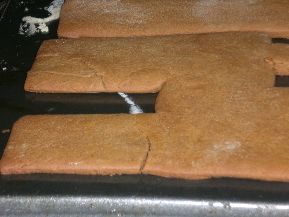 This is what happened to us a lot this year. The gingerbread would cook and then crack so we had to bake it again (and again in some cases). For some cracked pieces we simply put glue in the cracks in hopes that it would stay together (which sometimes worked).