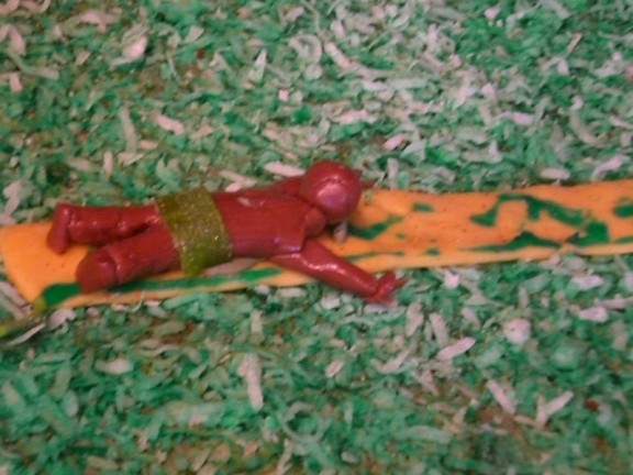 Here is a close-up of the slip-n-slide. The ramp was mine but the guy in his trunks was made by Katherine.