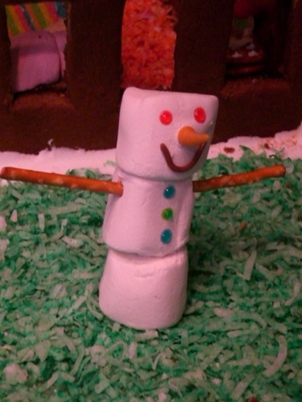 The obligatory snowman (although there is no snow on the ground!) was made by Chris using marshmallows and some miscellaneous stuff.