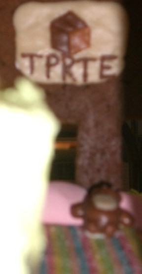 Here’s a wall hanging courtesy of Chris. My understanding is that TPRTE started when someone typo’d TORTE on his social network called Cardboardia. Above the word is a cardboard box which is the Cardboardia symbol.