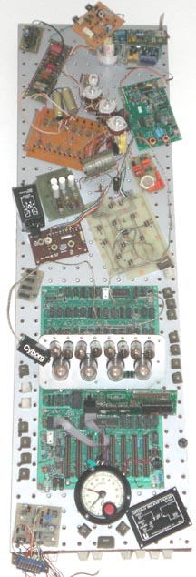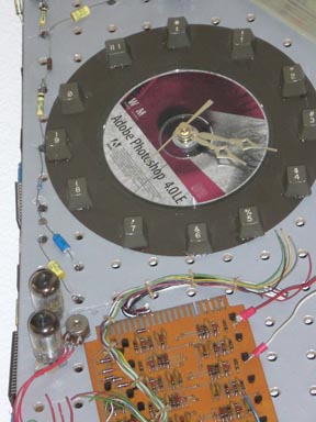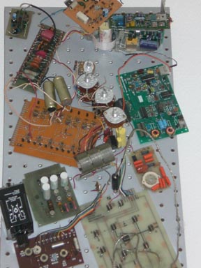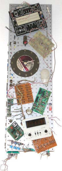 I spent several months dismantling boxes that contained an array of wires, vacuum tubes, early circuit boards, resisters, keyboards, mice, floppy disks and other bits and pieces of indecipherable junk. Below I have tried to capture the final compositions. I ended up creating two wall hangings, each forty inches tall by 12 inches wide. In a frenzy of activity, I spent the next few months selecting and gluing various techno-bits to these two boards. I would like to say that there was a rhyme or a reason for my choices, but that would be a lie. At times I felt as though I knew what I was doing, but mostly it was a matter of what fit where and what seemed like it might look good in certain spots. The results are below. Don’t hold back. Share your true feelings.